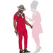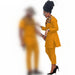 The men’s outfit is crafted to perfectly complement the women's design, creating a harmonious couple look. The top showcases matching Ankara detailing, while the pants offer a clean, modern cut that brings the entire set together.
