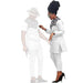 The women’s ensemble features rich Ankara patterns carefully selected for their bold colours and symbolic African artistry. Skillfully tailored, the outfit contours the feminine silhouette with comfort and sophistication. The soft Bazin Riche fabric adds a luxurious texture and subtle sheen, making this piece perfect for weddings, engagements, cultural celebrations, or evening events.