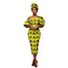 African Heritage Dress – Slim Fit Dashiki Gown with Puff Sleeves and Headwrap