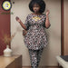 African Women’s Embroidered Shirt and Pants Set – Short Sleeve Ankara Outfit