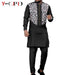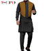 The men's outfit includes a finely cut Dashiki-style top paired with matching trousers. The top showcases intricate African motifs that complement the women's dress, symbolising harmony and partnership between the couple. The trousers are tailored for a clean, modern fit, making the outfit suitable for both casual cultural gatherings and formal celebrations.