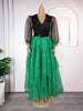 Pair this gown with statement earrings, heels, and a clutch bag for a chic party look—or with minimal accessories and flats for a graceful everyday ensemble.