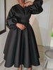 The dress features a beautiful A-line silhouette that flatters all body shapes, gently flowing from the waist to create a feminine and confident look. Its long lantern sleeves add a touch of drama and elegance, giving the outfit a soft, refined movement with every step. Perfect for cooler seasons, the sleeves also offer modest coverage suited for worship and formal occasions.